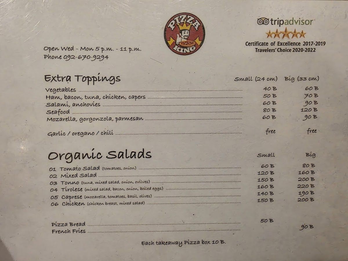 Introducing Pizza King Express, your go-to pizza haven nestled in the heart of Koh Chang, Thailand. Located at 34/4 Chai Chet, this charming spot is renowned for its delightful thin-crust pizzas that burst with flavor. Customers rave about the quality cheese and rich tomato sauce, offering a much-welcomed escape from traditional Thai cuisine.